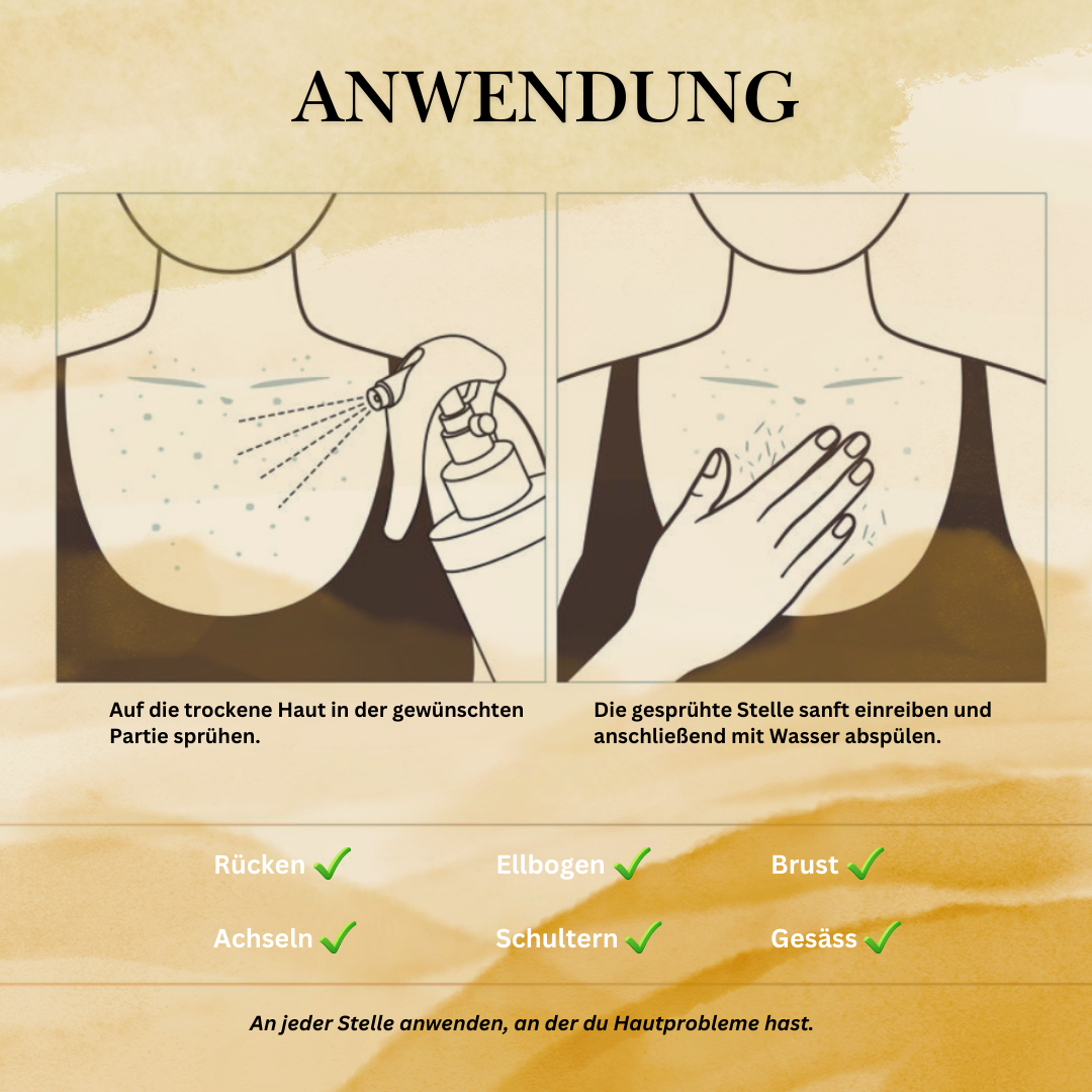 Für optimale Ergebnisse 2–3 Mal pro Woche auf die betroffenen Stellen sprühen.