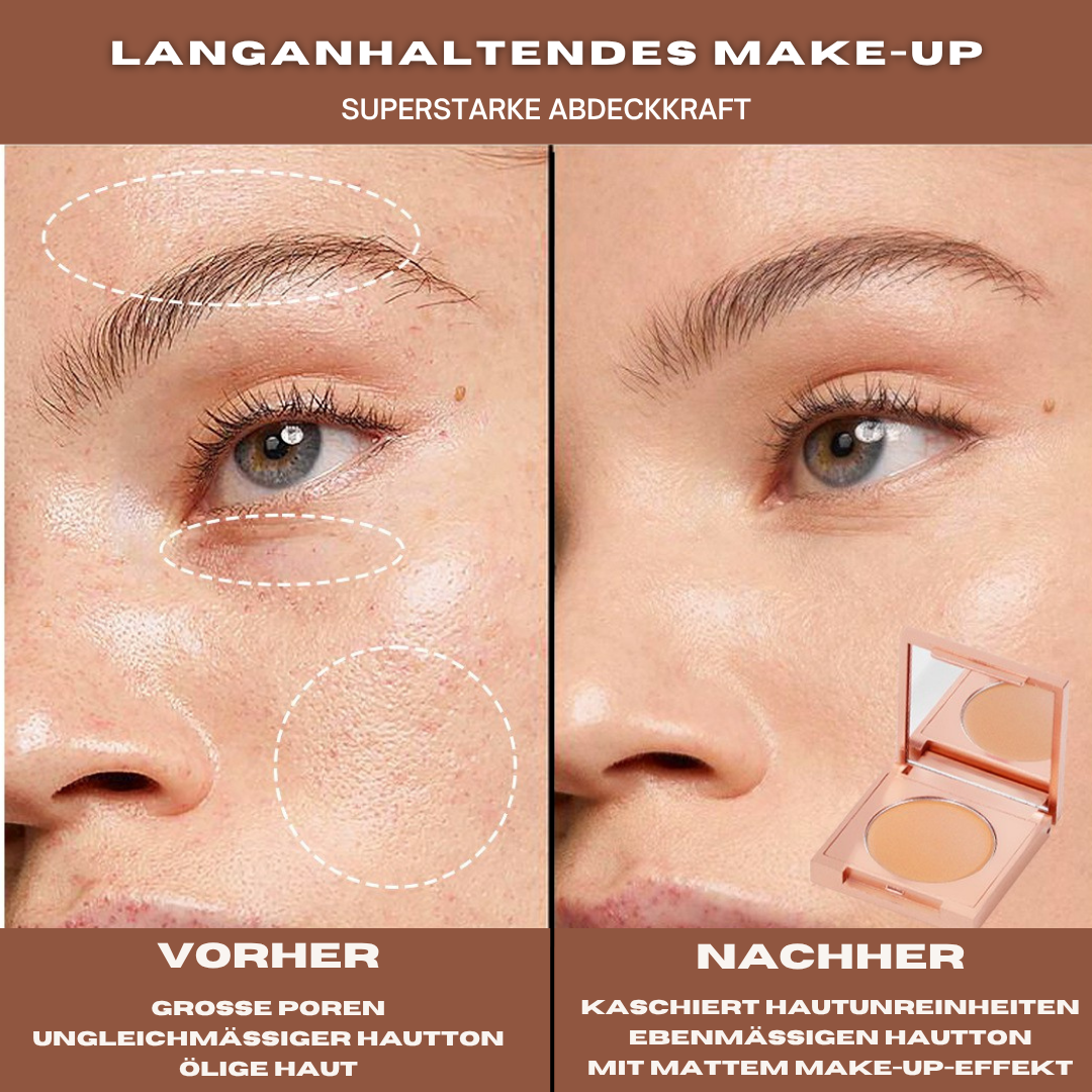 Erleben Sie den Unterschied: Unser Premium-Make-up kaschiert grosse Poren, Rötungen und ölige Haut sofort – für einen ebenmässigen, matten Teint, der den ganzen Tag hält.